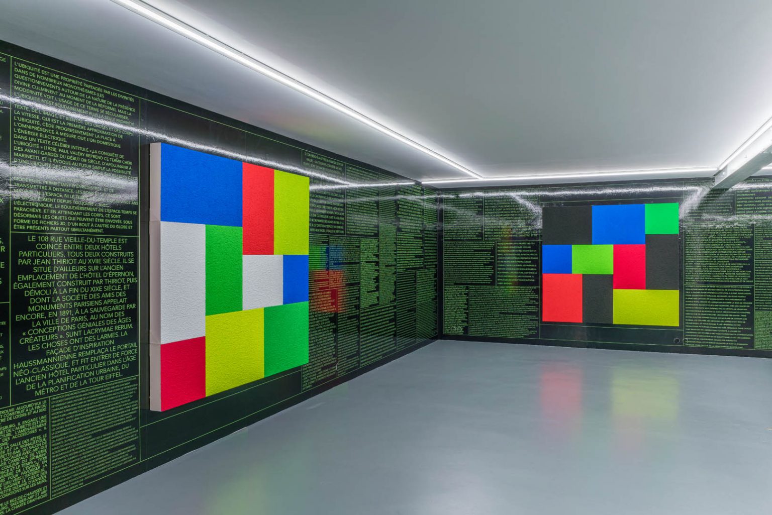 paintings, wall-sized digital prints, and texts.