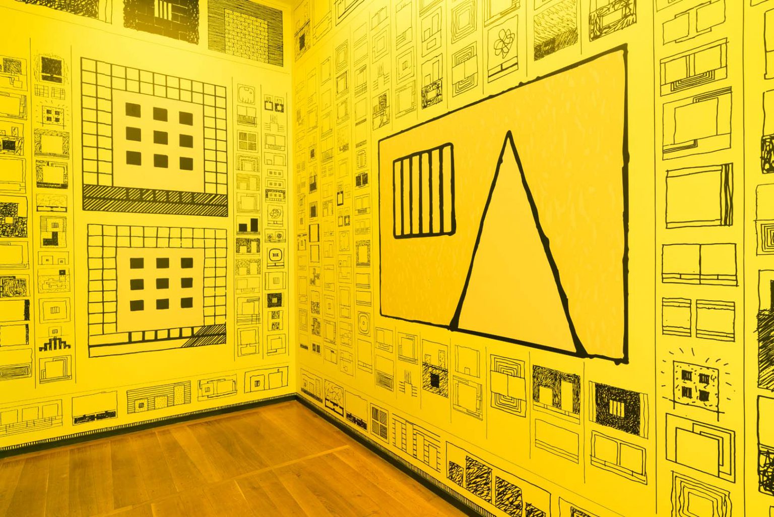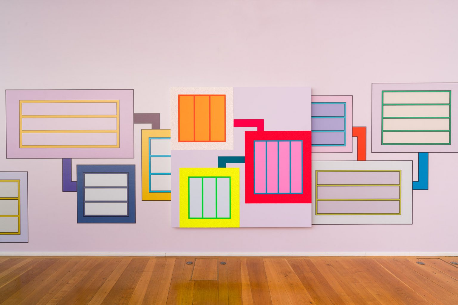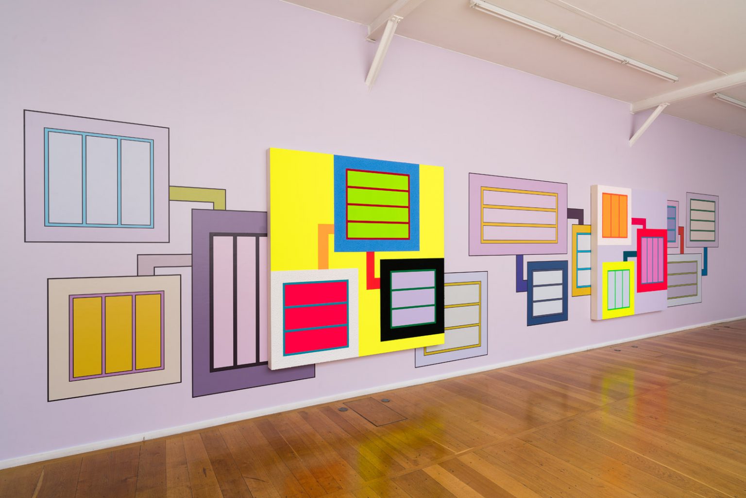 Finally, in the basement, three paintings inspired by neo-plasticism took up compositions already used by the artist, in