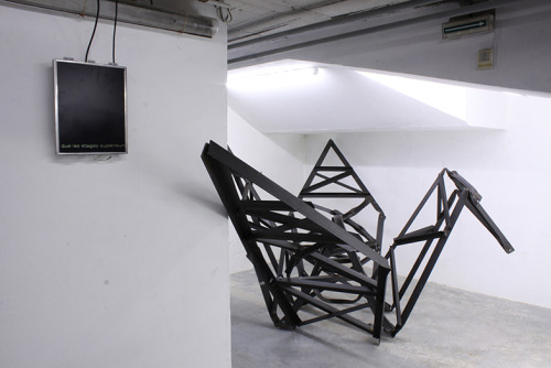 Conçue comme une invitation au voyage, cette exposition met en tension les notions d’élévation et de chute, d'équilibre et d'instabilité, d'utopie et de ruine, de mémoire et d'oubli. Dans l’espace se dessinent des micro-territoires, des passages, des trajectoires et des voies, mais aussi des obstacles, des impasses et des précipices. Les corps y sont à l’image des œuvres et de la matière, à la fois libres et contraints. Proposant d’avancer en prenant conscience de chaque pas, en assumant chaque pensée et chaque action, l’exposition invite aussi à savoir s'arrêter au bon moment, juste avant la chute.
